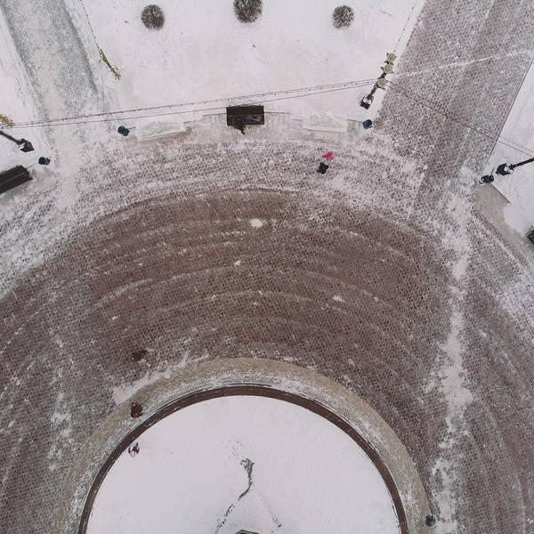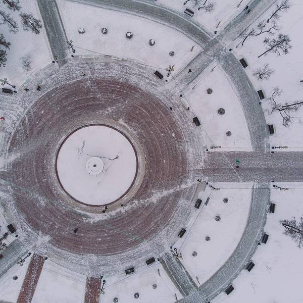 公园的喷泉,此时显然已经结了冰。大雪之中,整个公园都铺满了银白。俯瞰下去,仿佛一个图腾列宁街以基诺夫公园为终点,浩大的公园,正对着国会大厦。大雪之中,整个公园都铺满了银白。公园的喷泉,此时显然已经结了冰。俯瞰下去,仿佛一个图腾。