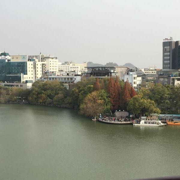 3、夜景景观更佳。双塔公园旁免费的行人步道日月双塔是桂林两江四湖上的一个标志性景点,确切的位置是位于杉湖上,距离城徽象鼻山仅有一条马路之隔。因为桂林市区内的楼房都是不允许高过山水的,所以,走在桂林市中心即使不进双塔公园,也可以看到双塔。双...日月双塔是桂林两江四湖上的一个标志性景点,确切的位置是位于杉湖上,距离城徽象鼻山仅有一条马路之隔。因为桂林市区内的楼房都是不允许高过山水的,所以,走在桂林市中心即使不进双塔公园,也可以看到双塔。双塔周围的一圈都建有惠民的步道,在步道上可以找到很多和双塔合影的地点。我认为,如果不登塔的话,完全没有必要花钱进公园,就在双塔附近散散步,反而能看到双塔的全貌。观赏双塔一天皆宜,无论是上午迎光还是下午夕晒,360度的步道,只要稍微转转,都可以找到一个拍照的好角度。顺光适合拍人像合影,逆光则可以拍到倒影,塔印碧波的景象。如果只选一个时间来的话,我则更推荐夜晚来欣赏夜景。只有夜晚来才能比较直观的看到“日月”的光辉。9层高的日塔放射出的是金色的光亮,同时7层高的月塔散发的是银色的光芒。他们连同两江四湖的夜景灯光,构造出了一个如梦似幻的世界。如果时间允许,也可以登塔看看,日塔内还安装有垂直升降电梯,是目前世界上最高的电梯铜塔,也是世界上最高的水中塔。在高41米的塔上,可以从杉湖的中心俯瞰两江四湖的如画美景。如果喜欢这里的风景,日月双塔附近还有很多酒店,可以足不出户就看到这里的美景。比如漓江大瀑布饭店、维也纳酒店等等。贴士: