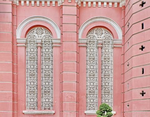 ...情 坐落在最繁闹的3区 人潮和车流一刻不停 然而 镜头下的教堂和天空 完全不被打拢 很是梦幻~始建于1870年 6年后完工的粉红教堂是哥特式建筑 经过不断修缮 扩建改为目前的面貌 立面单一主塔高52.6m 顶端八角形尖塔 要走远一些才看能见 钟楼在其顶端 教堂形式对称 一左一右各有一个圆顶 屋顶上鱼鳞般的瓦...始建于1870年 6年后完工的粉红教堂是哥特式建筑 经过不断修缮 扩建改为目前的面貌 立面单一主塔高52.6m 顶端八角形尖塔 要走远一些才看能见 钟楼在其顶端 教堂形式对称 一左一右各有一个圆顶 屋顶上鱼鳞般的瓦片 很有海洋感 罗马希腊式的列柱里 藏着天使雕塑 尖塔上刻有十字架 外观整体 是粉色与白色的搭配 初看朴素 细看之下 方可看到雕花窗 花砖⋯等细节 1976年 为纪念建筑100周年重新粉刷时 将整座圣粉的很彻底 鲜艳抢眼 带着华丽的巴洛克精神 很符合东南亚炙热的民情 坐落在最繁闹的3区 人潮和车流一刻不停 然而 镜头下的教堂和天空 完全不被打拢 很是梦幻~ 展开