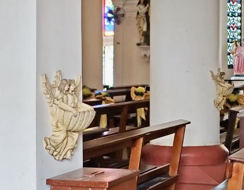 这么漂亮的教堂就伫立在人来人往的街边,非常好找,当地人没有人不知道。粉红教堂整体算小,可供游人活动空间很少,共有两扇门,进入第一扇大铁门后才可以摸到教堂的强;第二扇门是教堂内部,做弥撒的地方。
