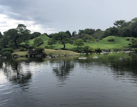 水前寺公园,除了熊本城以外一个比较值得游览的一个公园,水前寺趣园是取自陶渊明的诗作而来,园内有小山丘水前寺公园,除了熊本城以外一个比较值得游览的一个公园,水前寺趣园是取自陶渊明的诗作而来,园内有小山丘,有小湖泊,有神社,有铜像,这里的植物都是修剪过造型的,被精心呵护着