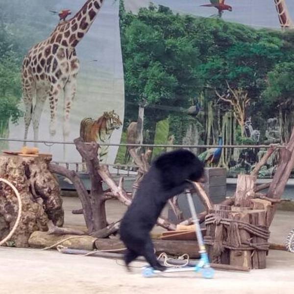 总站(起点站)——非洲部落(第一站下车点)——天鹅湖(第二站乘车点)——大熊猫馆(第二站下车点)——狮虎山庄(第三站乘车点)——欢乐动物营(终点站)。