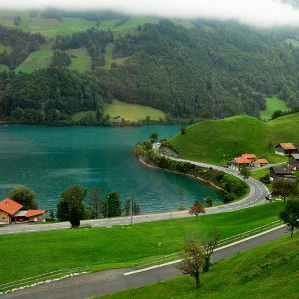 龙疆是瑞士风景区琉森( Luzern)去因特拉肯(Interlaken)旅游路线上的一个美丽小城。充满雪山下的湖光山色。