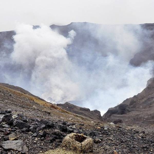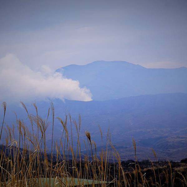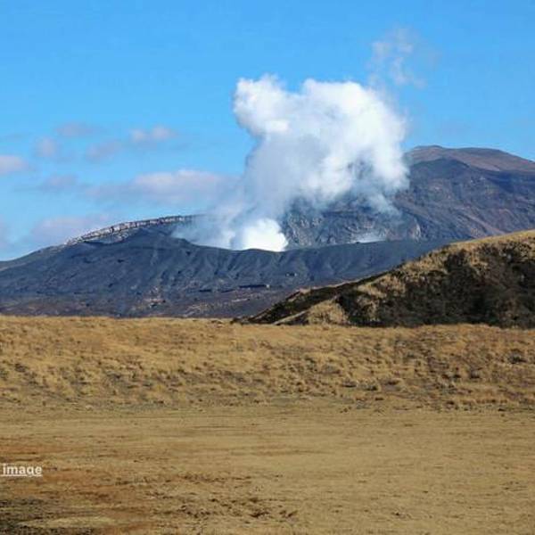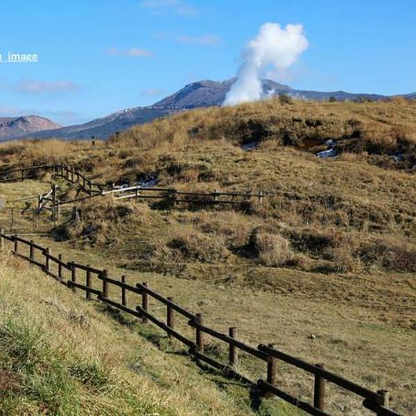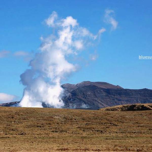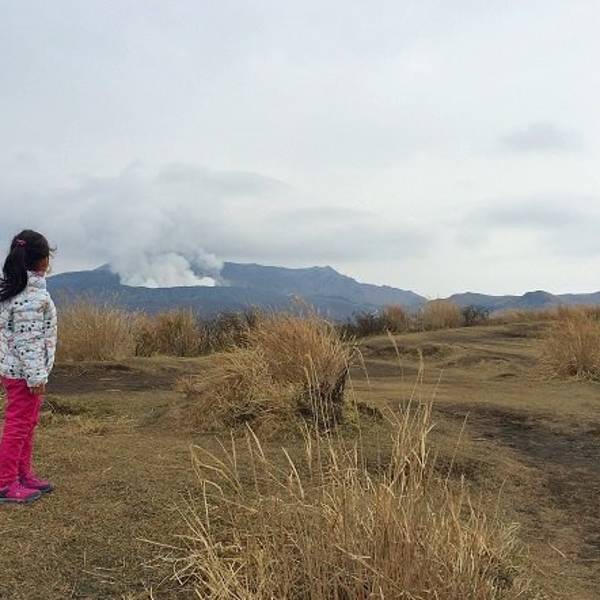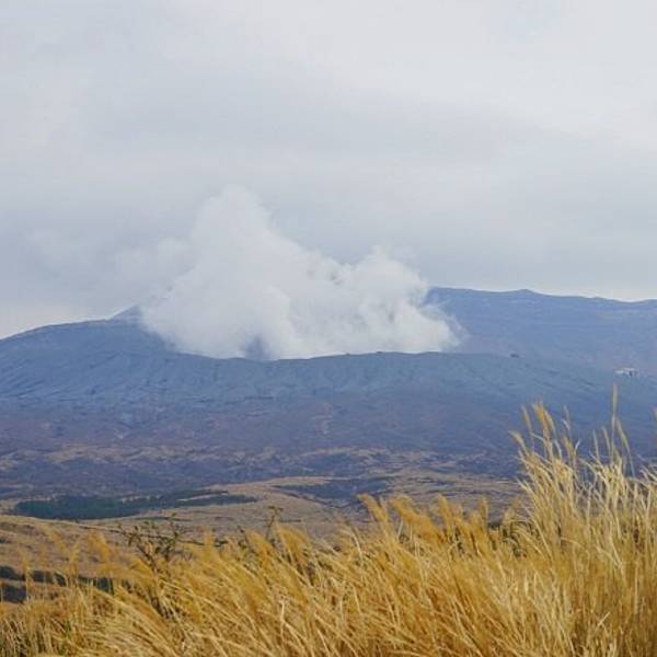 2016年4月16日,由于熊本地震,阿苏火山发生了小规模爆发,浓烟冲上天空约一百米。