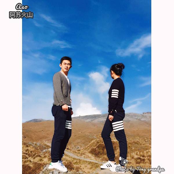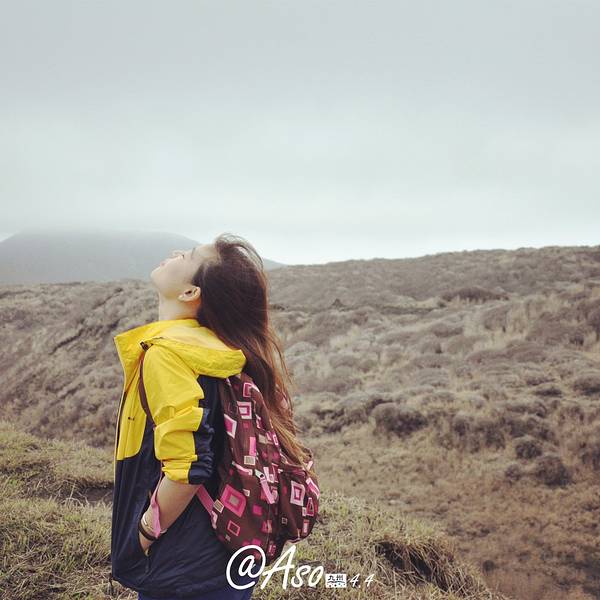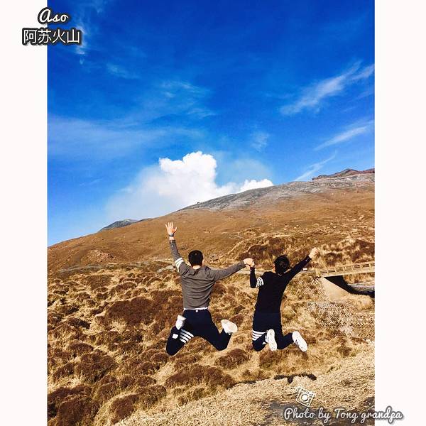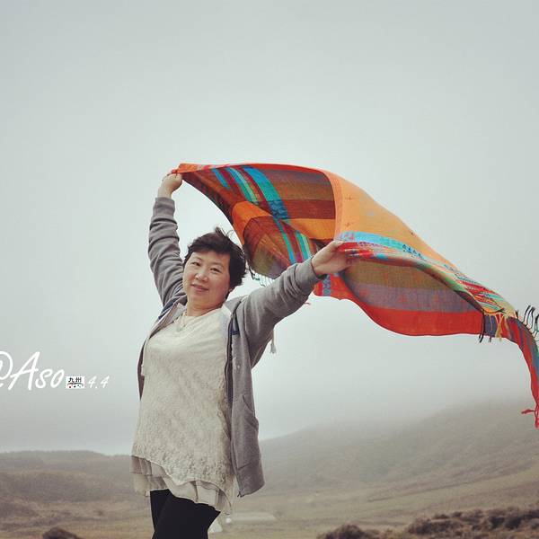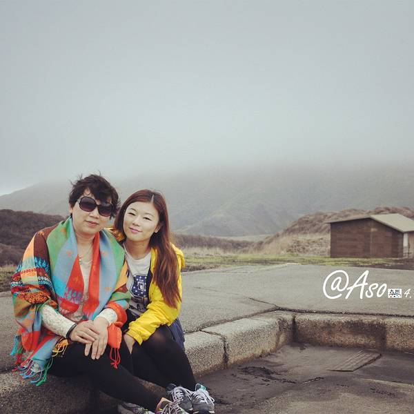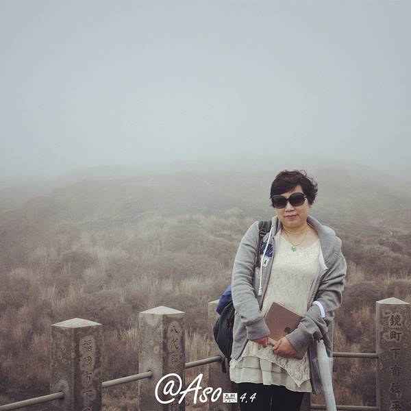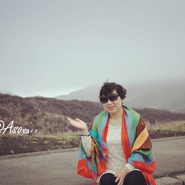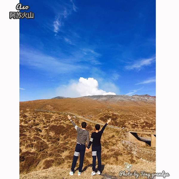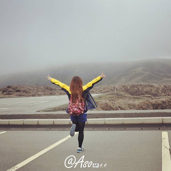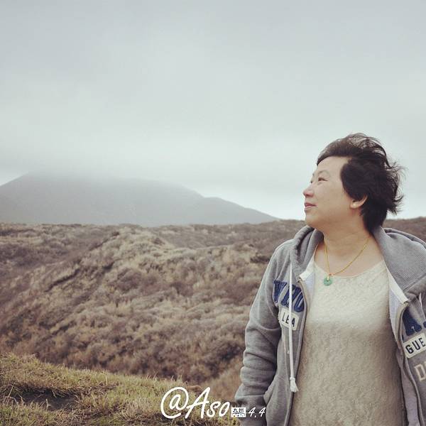 自拍一张,手指的地方就是火山口阿苏火山是日本著名的活火山,是熊本的象征,