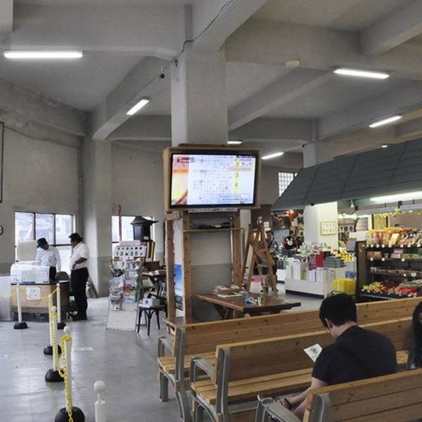 二层是前往火山口参观的缆车售票处· 可是很不巧正好赶上近期缆车停止运行,只能改为乘坐巴士,着实...巴士到达阿苏山西站时开始下起雨来`` 一群人连忙飞奔进车站大楼里躲雨
