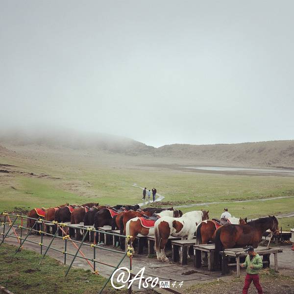 >>>从山顶到山下草地,一路可以观赏从冬到夏不同的自然景观。可好吃啦~山顶还有个神社今天的第一站是阿苏山