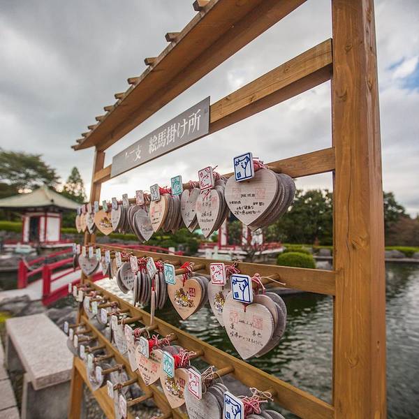 往里走是一个非常宏大的日式山水园林,看了标示后发现这是代表了十二生肖的一个景观,站在高处看这个...第二天的目的地是去阿苏山,一早就到在熊本公交总站买车票,但是机缘巧合刚刚走了一趟车,而下一趟车的一个小广场,正好在举办一个物产交流大会,现场有一群一会儿要表演的青少年正在排练太鼓。
