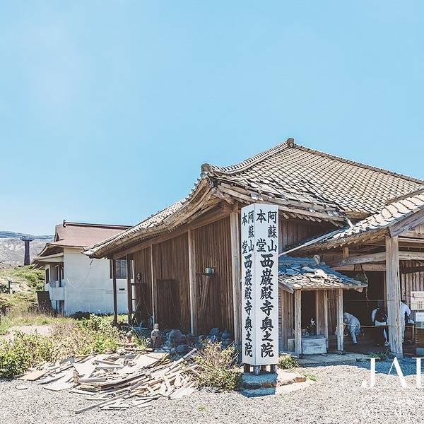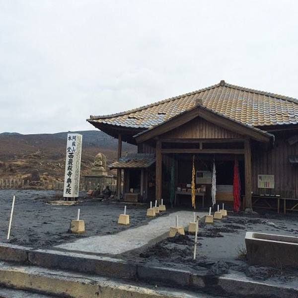 高频繁的喷发,使得阿苏火山已经成为了一级戒备的地方,缆车也不得不停下来缆车站旁边的神社经过地震,火山喷发的洗礼后