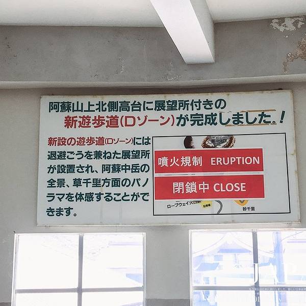 不过因为经常遇到阿苏火山的喷发,所以外表看上去残旧不堪2014年11月26日,阿苏火山的第一火山口发生喷发,山体有轻微膨胀,火山喷发的浓烟高达约1000米。