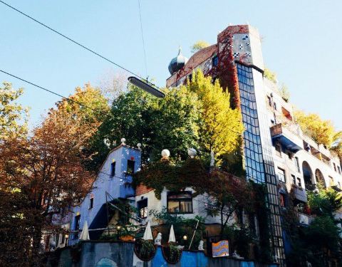 百水屋是奥地利的建筑瑰宝之一,是由奥地利知名画家兼建筑师弗利登斯莱希·百水设计,整座五颜六色的建筑宛如童话公寓一般,成了摄影师钟爱的取景地。 前卫设计 百水屋是白水先生和维也纳政府联合建造的公寓,于1983-1985年间完工。大楼中共有 52 间公寓、19个露台,色彩斑斓的瓷砖、弯曲的墙面和起伏的地面极具不对称的美感。而且屋顶和露台都种满了植物,更添梦幻色彩。 公寓内部有当地居民居住,所以只能参观其外观,如果你对百水的建筑风格感兴趣,不妨前往周边的维也纳艺术馆参观,一睹百水屋内部的秘密。