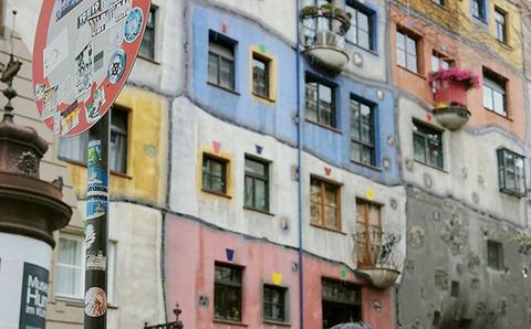 下午驱车1个半小时,就来到了奥地利首都维也纳,先去了百水公寓,五颜六色的建筑宛如童话一般。
