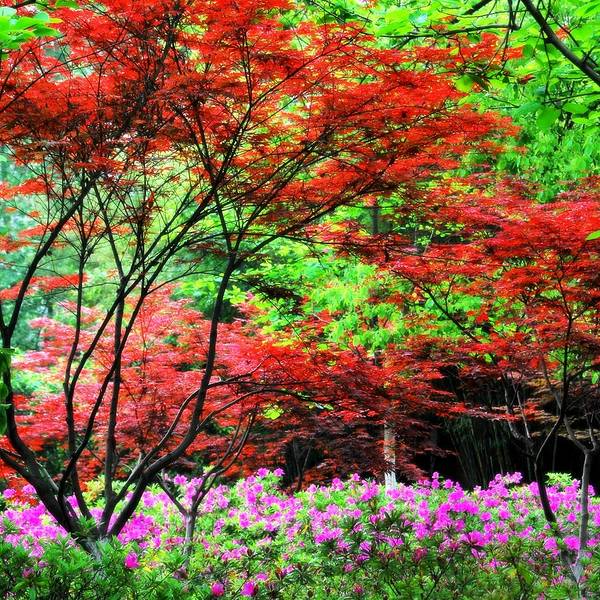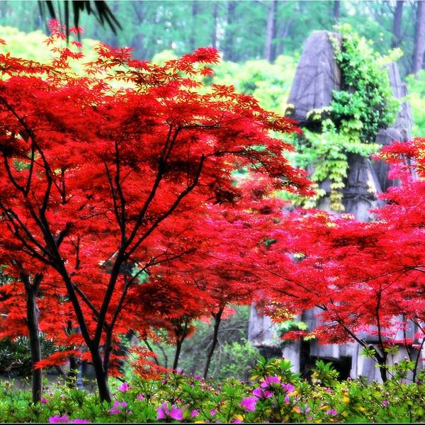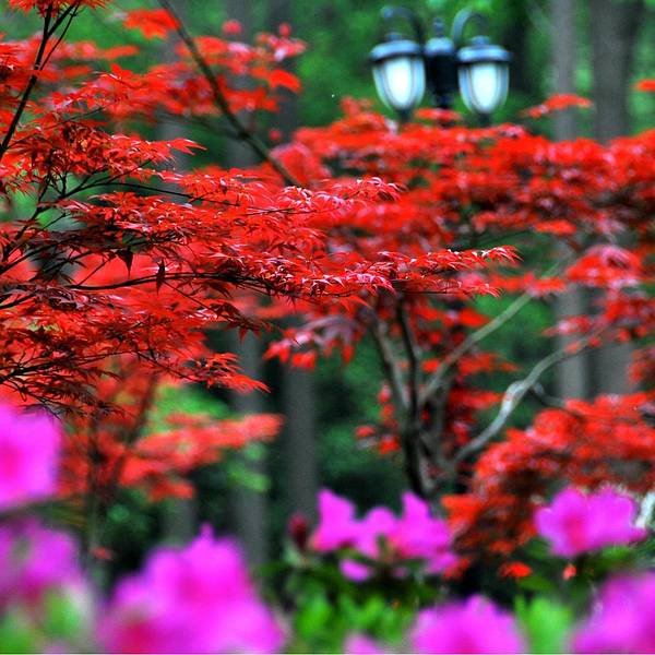 公园内绿化非常好,随处可见参天的古木。门票:免费。当杜鹃遇上红枫,便是真正的姹紫嫣红