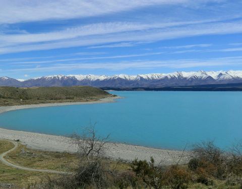 实用 确实这样,南岛风光容纳了我国新疆和西藏的所有美色,最大的好处就是,这里海拔不高,不用担心高原反应在新西兰南岛,从奥玛鲁到库克山约200多公里,期间要经过网上盛传的牛奶湖--普卡基湖(Lake Pukaki),碧蓝碧蓝的湖水如翡翠般让人心醉,会让人想到了我国境内西藏的羊湖。 这里的景色和西藏很像。确实这样,南岛风...在新西兰南岛,从奥玛鲁到库克山约200多公里,期间要经过网上盛传的牛奶湖--普卡基湖(Lake Pukaki),碧蓝碧蓝的湖水如翡翠般让人心醉,会让人想到了我国境内西藏的羊湖。 这里的景色和西藏很像。确实这样,南岛风光容纳了我国新疆和西藏的所有美色,最大的好处就是,这里海拔不高,不用担心高原反应。 普卡基湖的源头来自于库克山的冰川,汽车沿着蜿蜒的公路前行,视野越来越开阔,当你还陶醉于身边的湖水时,不经意间抬头,就看到了前方的雪山。真美啊!远处库克山的雪峰在云层里若隐若现,与近处的湖水相映相伴,在这一段通往前方的公路上驾驶,真是太享受了,路上车很少,有可供观景的地方,可以随意停车拍摄。一路畅快驾驶,普卡基湖在向前延伸,越靠近库克山,湖水越浅,慢慢就不见了。呈现在公路两边的是大片的草甸,蒿黄的色彩在雪山下显得宁静安详,阳光不时地闪动着,时而照在山峰,时而照在草甸,让人百看不厌的长条云依旧灵动着身姿,舞蹈着。 这条路堪称景观之路,乃摄影的天堂。去新西兰自驾的朋友,决不可错过这道美景! 展开