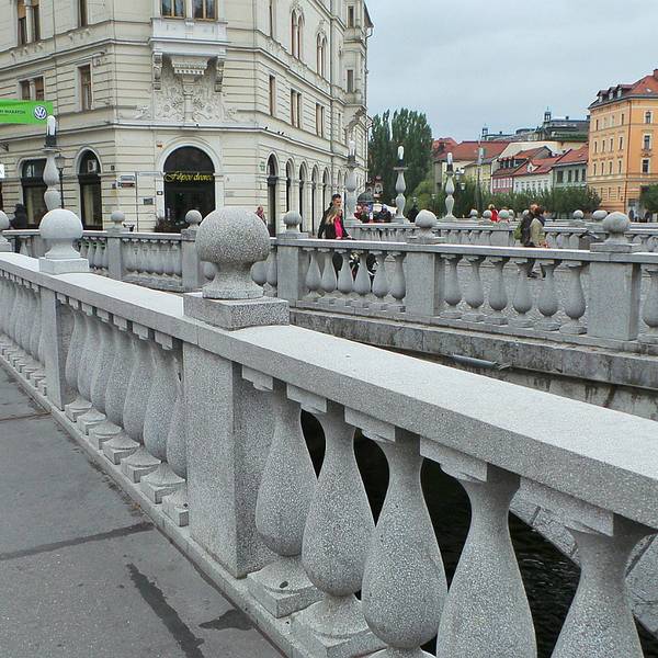 三座不同的平行桥梁横跨在卢布尔雅那河上,跨过三桥便来到了老城。三座桥平日里游客非常的多,它们造型各异各有特色,尤其到了夜晚,灯光璀璨,十分的漂亮,是卢布尔雅那老城的标志。
