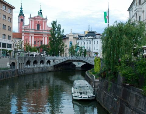 【地址】River Ljubljanica from Presernov trg to the Old Town,Ljubljana, Slovenia