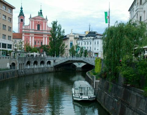 可以翻译成三重桥或者三段桥或者其他什么么。。。 【中文名】三段桥/三桥 【英文名】Triple Bridge 【当地名】Tromostovje 【开放时间】全年 【游玩时间】15分钟 【适合的旅游时间】晴天的白天 【地址】River Ljubljanica from Presernov trg to the Old Town,Ljubljana, Slovenia 【交通方式】步行或骑车方式 【费用】免费 【特色推荐】城市地标--三桥,桥建于19世纪,源自一个危机解决方案的小创意:当河上那一座小桥被岁月折损得疲态渐显时,1931年本地建筑师Plečnik在两侧增加两座侧桥,形成了三座桥,成为城市的一道新风景。 Prešernov trg广场上粉红色的巴洛克建筑物是Franciscan教堂。这一景也算是卢布亚尔那的经典景色了。 【环境评价】三段桥是连接老城区和新城区的小型桥梁,架设在卢布尔雅那河上的桥梁中,它的人流最多、最出名。从中世纪以来,就是连接西欧与巴尔干半岛商路的一部分。在桥的东侧,还有一座龙之桥,在桥的栏杆处设有卢布尔雅那城市的象征—龙的雕像。 沿着小河走,没有喧嚣没有拥挤,翠绿的河水静静流淌,两岸杨柳依依,人们在阳光下谈笑风生,这样悠闲的生活只应天上有! 没有很多游人,居民很友善,觉得自己是可以融入这个城市的,不用地图漫无目的的逛也不会迷路,没有举世闻名的景点,却会被一件小事一处小景而感动。在河边坐一下午晒太阳,看人来人往云卷云舒,就能感到心灵被洗涤,带走所有压抑浮躁,这就是生活,这才是生活。 【注意事项】游客只有到指定的斯洛文尼亚旅游局才可以租自行车,骑自行车逛是最好的选择,步行,比较累。