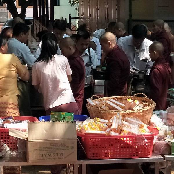 每天上午 10:30后僧人开始陆续回到寺庙开始用餐。