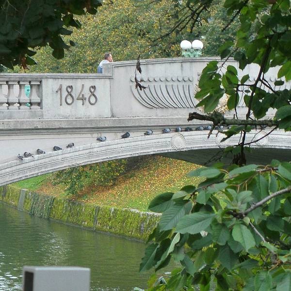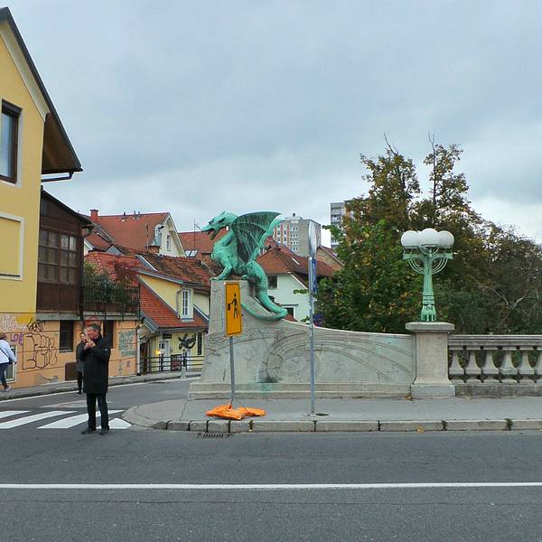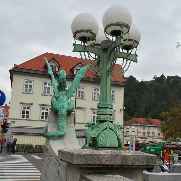 龙桥是卢布尔雅那最著名的桥,龙桥建于1901年,这座百年古拙的石桥,两端桥头各有两座长着翅膀的翼龙的青铜塑象,怒目圆瞪张牙舞爪,威风十足,这座桥来自世代相传卢布尔雅那的古老传说,据说古希腊雅歌号的船员逃亡来到这里,与龙形的怪兽殊死搏斗并战胜了它,从此在此定居,被驯服的龙,就成为这个城市的守门神,而这座别具特色的桥,则成了卢布尔雅那的著名地标。