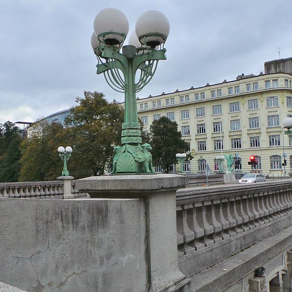 龙桥是卢布尔雅那最著名的桥,龙桥建于1901年,这座百年古拙的石桥,两端桥头各有两座长着翅膀的翼龙的青铜塑象,怒目圆瞪张牙舞爪,威风十足,这座桥来自世代相传卢布尔雅那的古老传说,据说古希腊雅歌号的船员...
