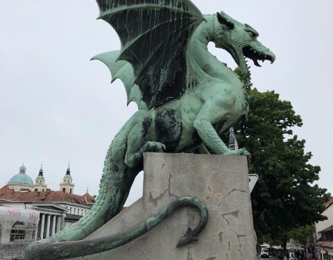 这座古桥作为卢布尔雅娜的地标已经有一百多年的历史了。龙是卢布尔雅娜的保护神,在这座桥的头尾有四条龙的雕塑,非常生动的震翅俞飞的感觉。