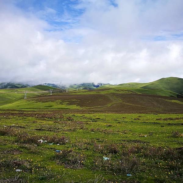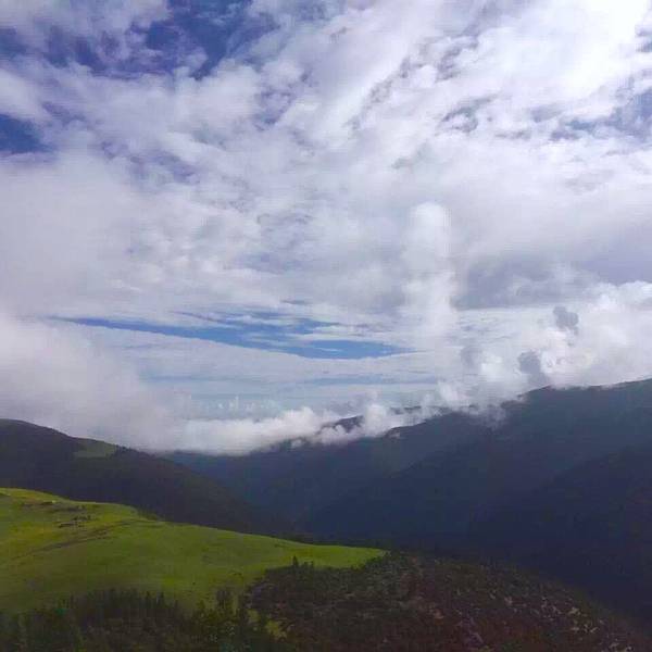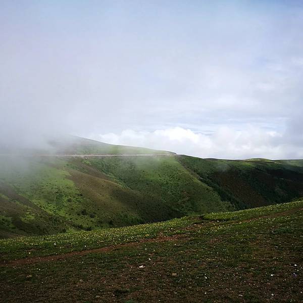 一路上吃的地方很少,而且都没看到红绿灯,更别提其它,中午几个人往草地上一坐,三人一瓶老干妈,再加上几个馒头,算是解决午饭了。如果说之前还总惦记黄桃罐头、士力架、奇趣蛋,这会就只想着给我瓶水和吹风机,让我把鞋刷一下吧。总觉得骑行川藏线,就是一次次刷新你的下线,之前二郎山就让我受不了,后面还有折多山。过了折多山,又来了个更崩溃的卡子拉山,每次你以为到了山顶,转过去一看,前方还是长长的一路上坡。连绵不断也就算了,关键它还特别绕,让人有种绝望的感受。下坡也不是一直下,还给你来个起伏加转弯。好在山顶视野很宽阔,风景不错,经常看见有人爱在朋友圈、空间装逼、装文青,爱用云卷云舒之类的矫情词,来到这里才能真正体会到这个词的含义,放在其它地方,都是无病呻吟。