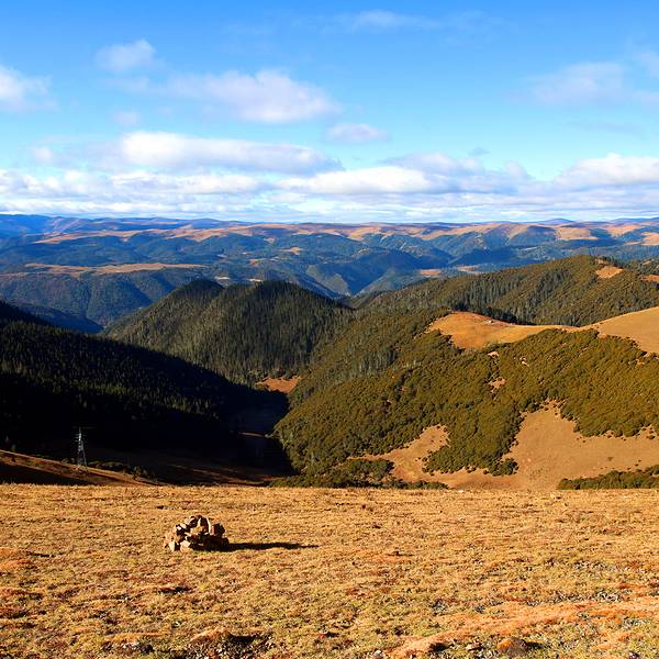 那一片棕褐色的就是青冈树,里面有菌种之王的松茸哦。
