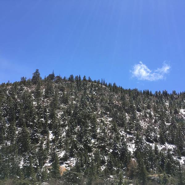 山上的积雪还没融化,软软的雪~ 很漂亮。一脚踩下去软软的,鞋都脏了还有一些长得像圣诞树🎄的树