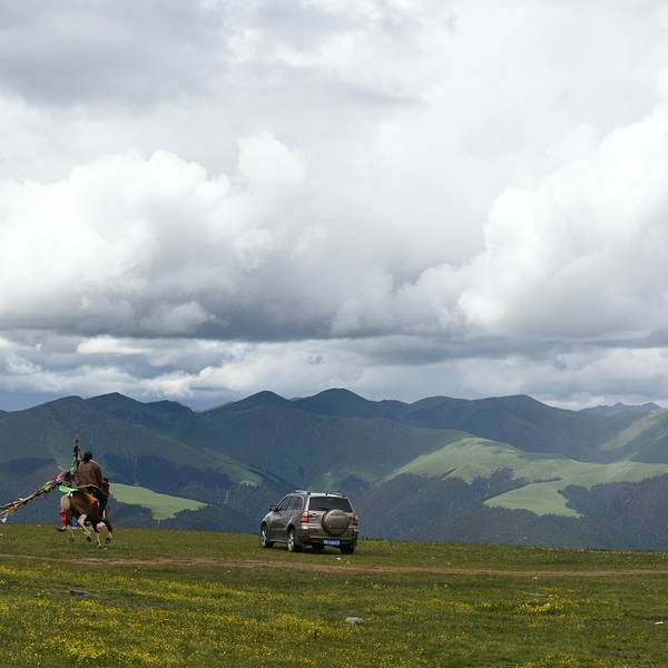 虽然从道班计算应该是40公里,但是还是很困惑。苍茫的天涯,成群的牛羊,还有威武的康巴汉子,骑着摩托车。