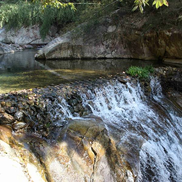 走到头便是南山瀑布,没有太奔腾的瀑布,但是顺着瀑布走下去感觉还是很好的,水直接喝也感觉很清澈