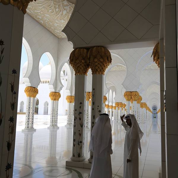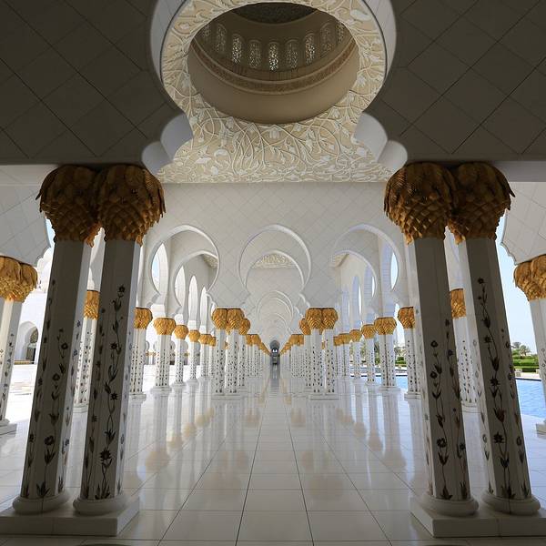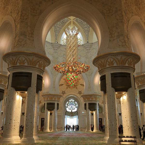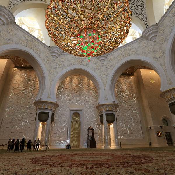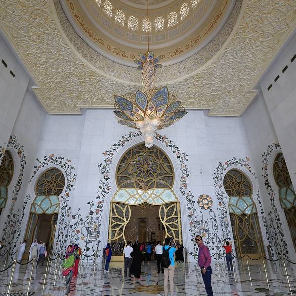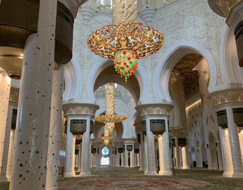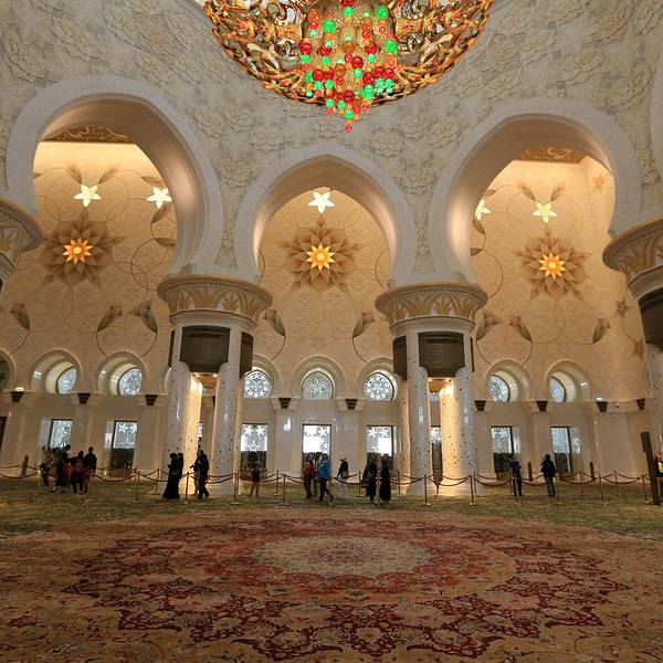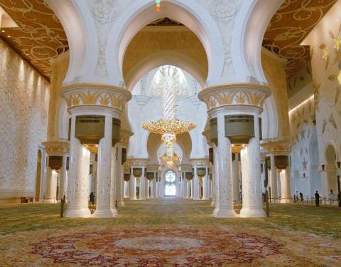 谢赫清真寺,阿布扎比参观必须打卡的地方,真的特别的华美,很震撼谢赫清真寺,阿布扎比参观必须打卡的地方,真的特别的华美,很震撼。以前参观随便,现在为了保护地毯,只能在外面的走廊进行浏览,不过这种体验也不错!