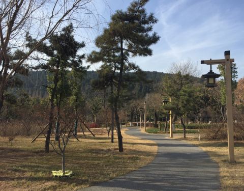 龙门石窟夹江相望,分东山和西山两处石窟,西山石窟更大气和壮观。大桥正处于两处连接通道上,构成游线的组合部,也可以方便从远处眺望石窟的全貌。
