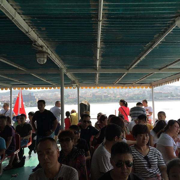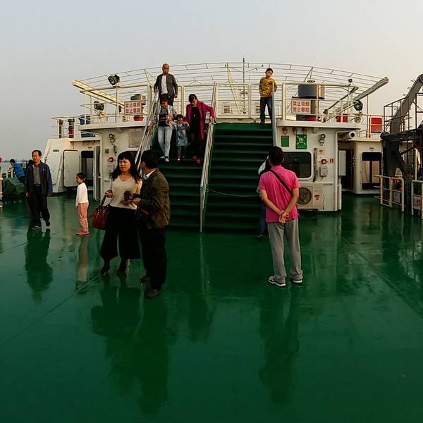 大清早5点半起床到长岛港排队上船,等了半个多小时终于算是登上了高大上的映华1号。这艘船要比上岛的时候长山号大很多。