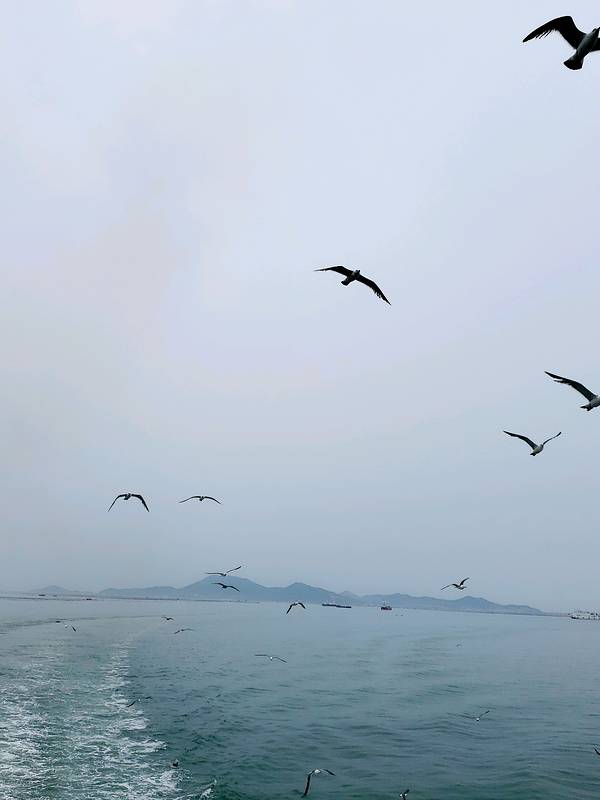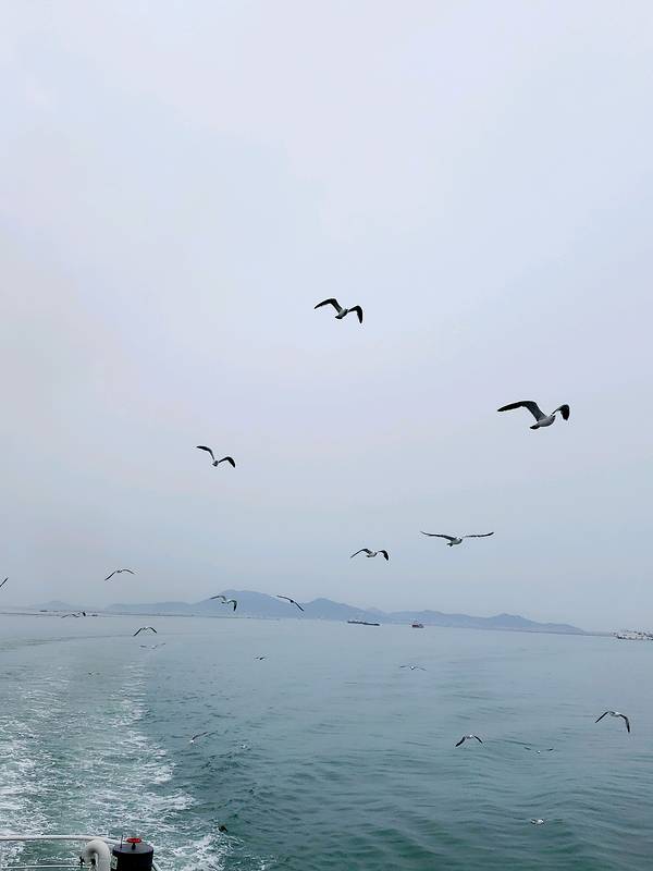 从蓬莱到长岛轮渡时⛴,一直坐在座位上观景,回程走出去到船的甲板上看到成群的海鸥,规模浩大🚢,有一种被追逐的感觉,可爱的海鸥们似乎换领跑队员的追逐着🕊🕊🕊因为回北京最近的高铁🚄烟台每天班次...