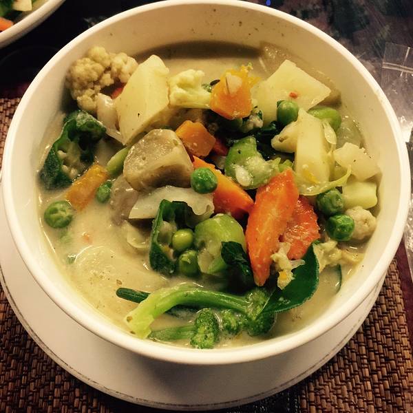 放好行李,某小只准备去找吃的!攻略上说附近有个泰餐厅,最近迷上了泰国菜,看着不远就去看看。 Rainforest,餐厅在二楼,正宗的泰式菜,价格也还好,装修也是泰式风格!去的时候,零散的坐着几桌外国人。哦,某小只在这里也是外国人。 看了菜单,叫来服务员,要了冬阴功汤,青咖喱蔬菜,没有芒果汁就来了杯草莓汁!本来这些就已经够了,可是,某小只突然看到了一个Noodle Salad!恕我孤陋寡闻,才粗学浅,没听过,尝尝? 真真的,好奇心杀死喵啊!Noodle Salad 就是炒面?而且还是炒的方便面!!,味道怪怪的,幸好有冬阴功汤。就着冬阴功汤吃着面条,让我想起了第一晚的冬阴功泡面!!我这是作死啊,还不如买泡面呢。 幸好,青咖喱和冬阴功汤拯救了我,太容易满足了也不好