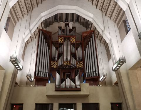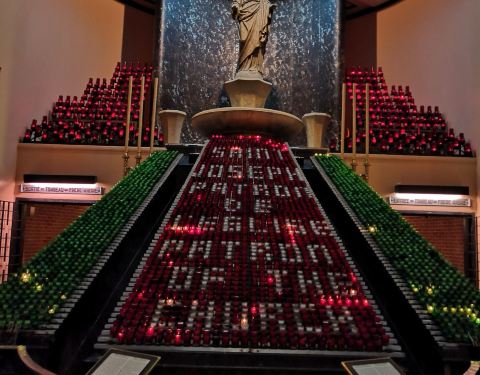 挺壮观的,但是19年秋天前面道路开始整修,路面都挖开了,照相效果真的不太好,里面真的是超级超级大,空间特别开阔,所以修了若干电梯方便游客上下,没有电梯真的会走断腿的。 因为是二十世纪初才完工的,所以和中世纪教堂相比,这个教堂有很多现代元素,并没有古意。 虽然天气很冷,但是还是有很多游客来