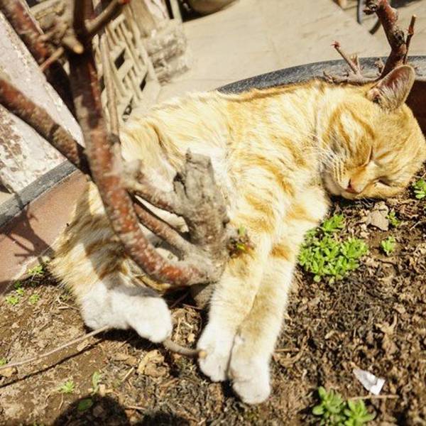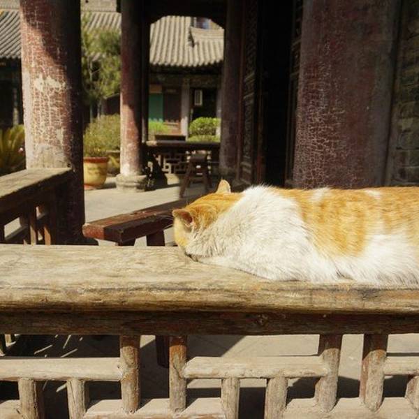 一进门就是两只慵懒得晒着太阳的喵咪。