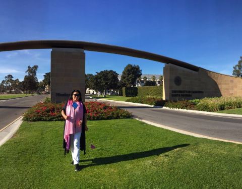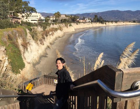 UCSB(加州大学圣塔芭芭拉分校)与其说是间大学,不如说是度假胜地里不小心盖了一些能当教学楼的建筑。两面临海,碧水蓝天,海滩与棕榈树无不散发出浓浓的度假气息。在这里读...用过早餐,便离开索尔万,奔向UCSB。