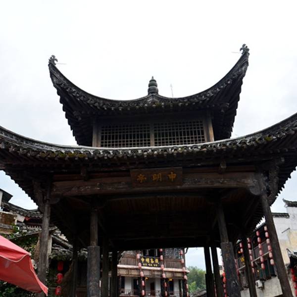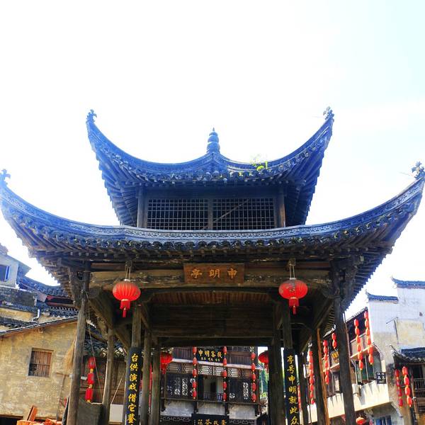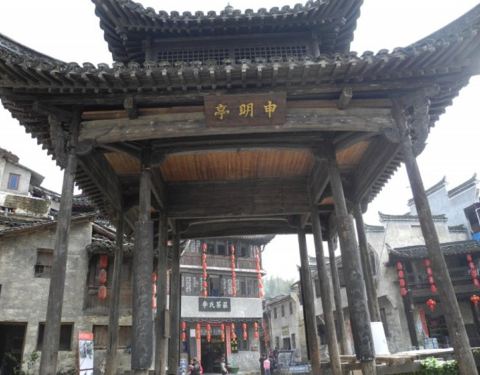 明朝时代的建筑物。村里的族人明断公理的地方,日常邻里的口舌是非、家庭的忤逆犯上、不孝子孙的违规越距、宗族内的济公营私等,都可以到这里来向大家申辩,以求合规距,求本源,除浊扬清,净法村风,以达到惩戒和挽救。申明亭的“明”字,不是“日”字旁而是“目”字旁的,意思就是告诫村民们,凡是都要睁大自己的眼睛,看清事情的本来面貌,明丑恶,辨是非,只有这样,才可以达到惩恶扬善,和宗睦族的目的。 “申明亭”除了有街亭和议事亭的作用之外,还有另一个特殊的功能,就是可供搭台唱戏。看戏是徽州人的传统喜好,每年的正月,都要请戏班子来唱戏的。在亭子的外面辟出一条道路,是通道,以方便行走。