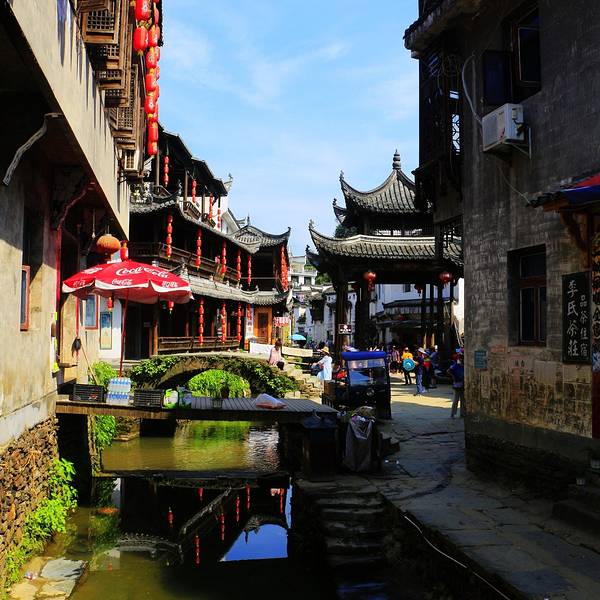 李坑村里一个算是比较象样的景点,位置很好,正在小溪交叉处,算是交通要道,周边一圈客栈、餐厅、商店,游客也多在这里休息。拍照还不错。