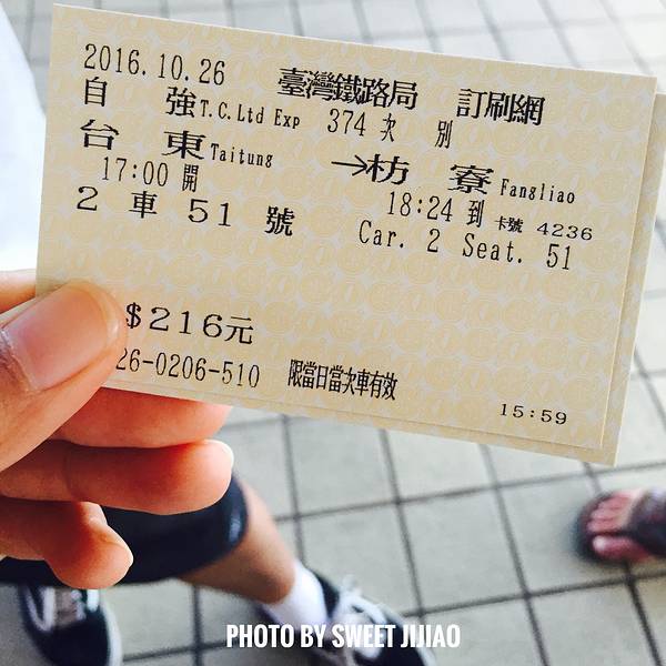 出发台东的车程需要5个多小时,在车上完成了两页手账(然而,之后的几天除了盖邮戳我就没有写手账了,邮戳也是断断续续盖了几个而已,囧)。坐上的是熊本熊主题的火车哟,虽然火车行驶速度不是很快,比较窄,但是还是挺舒服的。火车沿途中,在屏东车站附近看到美丽的海岸线呢,吃了一个素食便当。到达 台东 已经是下午两点多了,三点起还下了点小雨。在距离靠近 台东 转运站步行才几分钟的一所青旅处理好入住事项后,我参考着Google地图去海滨公园徒步了小半圈,然后买个红豆车轮饼简单地饱腹一下就前往铁花村了。