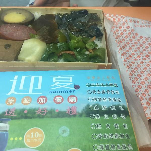 - ...铁,在车站大厅的7-11边上买了便当,写着池上米的便当,有鸡腿饭,池上特质,排骨饭,素食餐四种