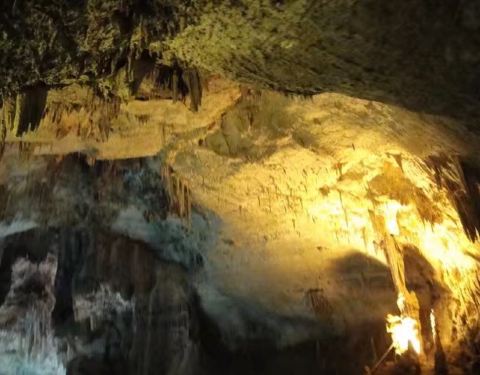 乘缆车下山后,我们来到杰达溶洞。溶洞与想象中相似,钟乳石形状千奇百怪,洞穴巨大,最高的地方目测有几十米。洞穴分上洞和下洞,上洞步行,下洞则是乘船游玩。洞内气温凉快,如果是夏天到来则很是舒畅。只是可...