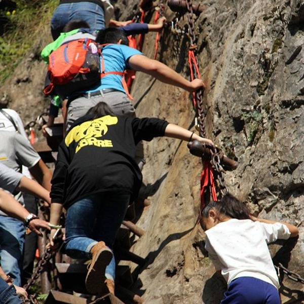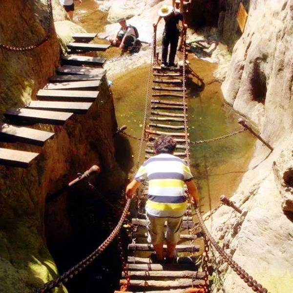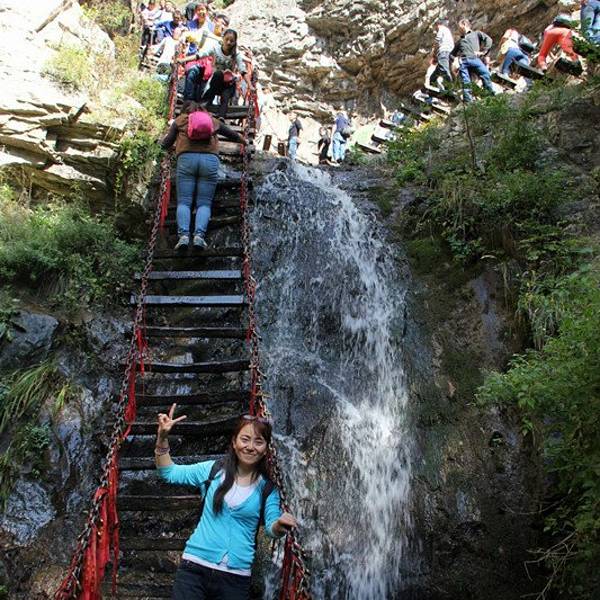 栖贤谷这是一道蜿蜒而上、九曲一线天的狭谷两边怪石嶙峋,少有草木,须攀十余架天梯才能通过。当年介之推母子就是经这里到达归隐地的。 栖贤谷位于山西介休绵山风景区,是一道蜿蜒而上、九曲一线天的峡谷,人在吊桥行,瀑布脚下飞,景观非常独特。从仙人谷停车场出发往南,过桥就到了西水沟,沿溪流而上,漫步在白云峡谷中,两侧山峰耸峙,郁郁葱葱,谷间植被繁茂,溪浪伴行,水声悦耳,环境十分清幽。西水沟景区是换气的氧吧,感受森林浴,享天然乐趣,康复疗养的好地方。