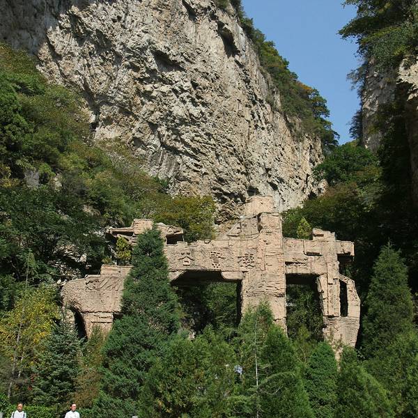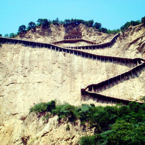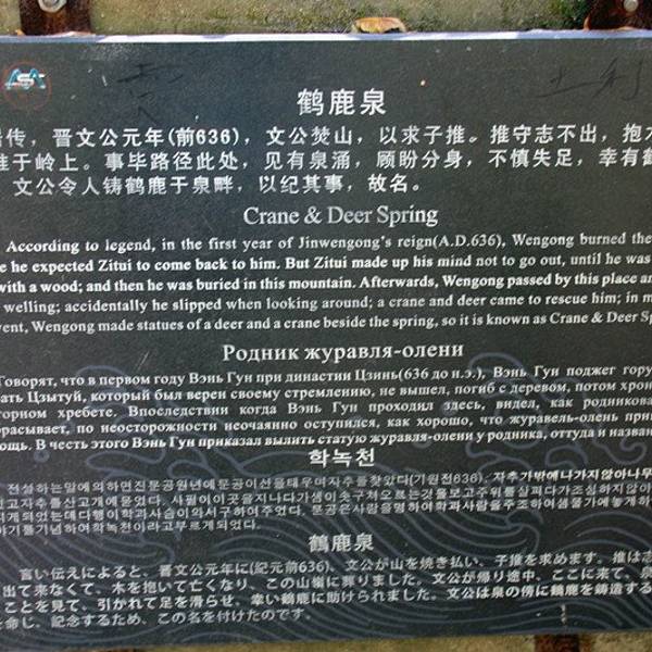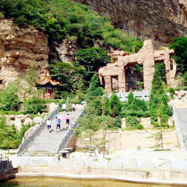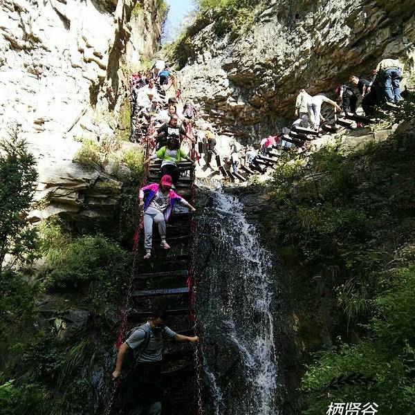 栖贤谷这是一道蜿蜒而上、九曲一线天的狭谷两边怪石嶙峋,少有草木,须攀十余架天梯才能通过。当年介之推母子就是经这里到达归隐地的。