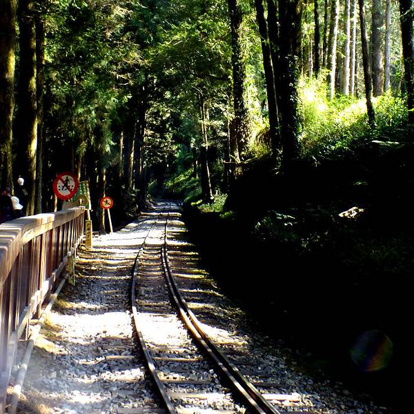 - 阿里山火车站有几条窄窄的铁轨,有些像我们在公园里见到过的儿童小火车的轨道,遗憾的是我们没有见到小火车
