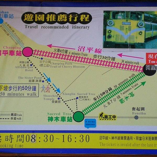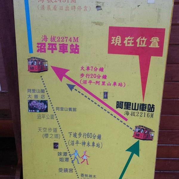 终于来到期待已久的阿里山车站,想到第二天凌晨要搭小火车看日出,有点迫不及待啊,祈求第二天好天气!!旁边有精致的木雕由图可以看到除了阿里山车站外,还有祝山车站,沼平车站还有神木车站。这里大概说几条较...终于来到期待已久的阿里山车站,想到第二天凌晨要搭小火车看日出,有点迫不及待啊,祈求第二天好天气!!旁边有精致的木雕由图可以看到除了阿里山车站外,还有祝山车站,沼平车站还有神木车站。这里大概说几条较为有用的经验: