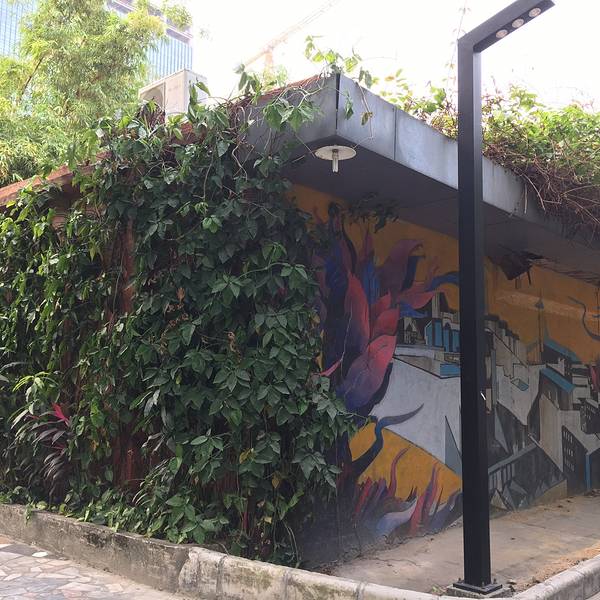 在路上游荡的除了我们两夫妻,还有一对父女,骑着摩拜单车。远远看见这吸引眼球的色彩和图案,原来这里是……你们猜。巧妙利用旧厂房修建的羊城晚报报业集团印务中心,很有气派。终于有一点蓝天,远处异木棉开放得好灿烂。好几栋建筑都是华阳国际的。那天刚好停电,咖啡厅不开门,可惜没得一试。刚好这一天停电,咖啡厅都没开。还有好几处正在建设中,过一段时间应该会更美好。 展开
