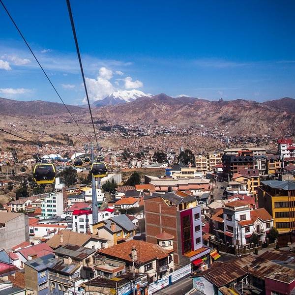 可以乘坐缆车到达瞭望台,拉巴斯总共有三条缆车线路,一般都是从这个山顶到谷底,再从谷底到另一山顶。票价每次 3 玻利维亚诺,很划算。