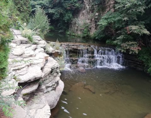 休介绵山的水涛沟是绵山最主要的自然景观,是总长有4000米,以水见长,一路上有几十个小跌瀑,以...休介绵山的水涛沟是绵山最主要的自然景观,是总长有4000米,以水见长,一路上有几十个小跌瀑,以及一些人造的动物塑像,带小孩玩更好,水质不怎么样,路面有些粗糙。